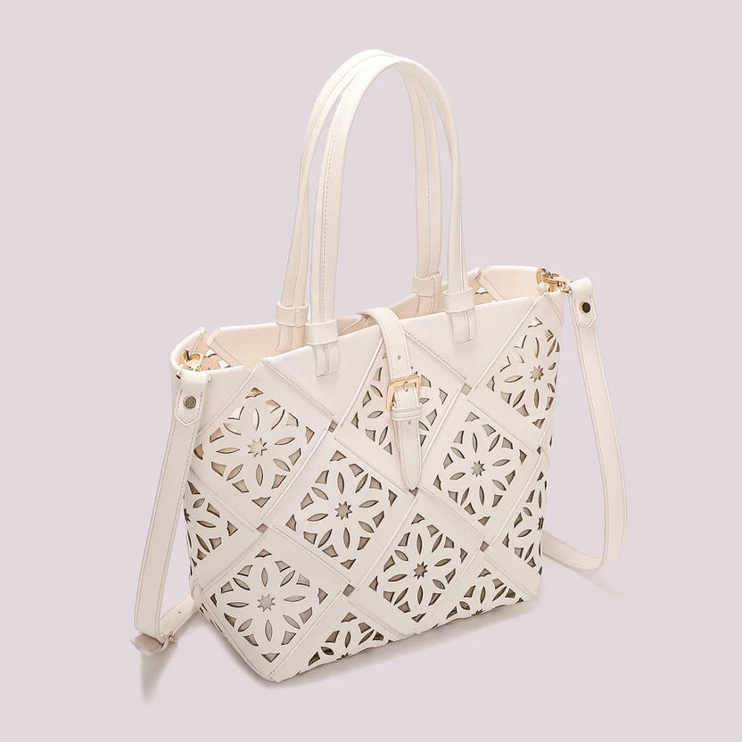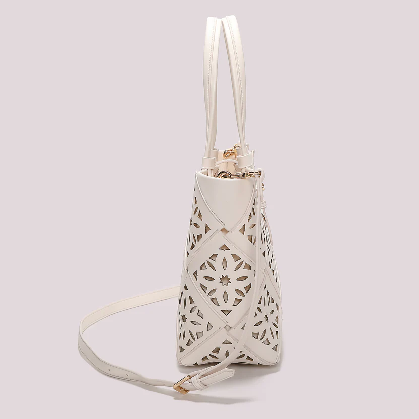Laissez-vous séduire par l’élégance sophistiquée du sac à main MIMI’ MUA’, un véritable chef-d’œuvre en Éco-cuir qui combine magistralement tradition et modernité. Son motif ajouré révèle un cœur de féminité et de style intemporel, inspiré par les délicates tissures de la mode haute couture.