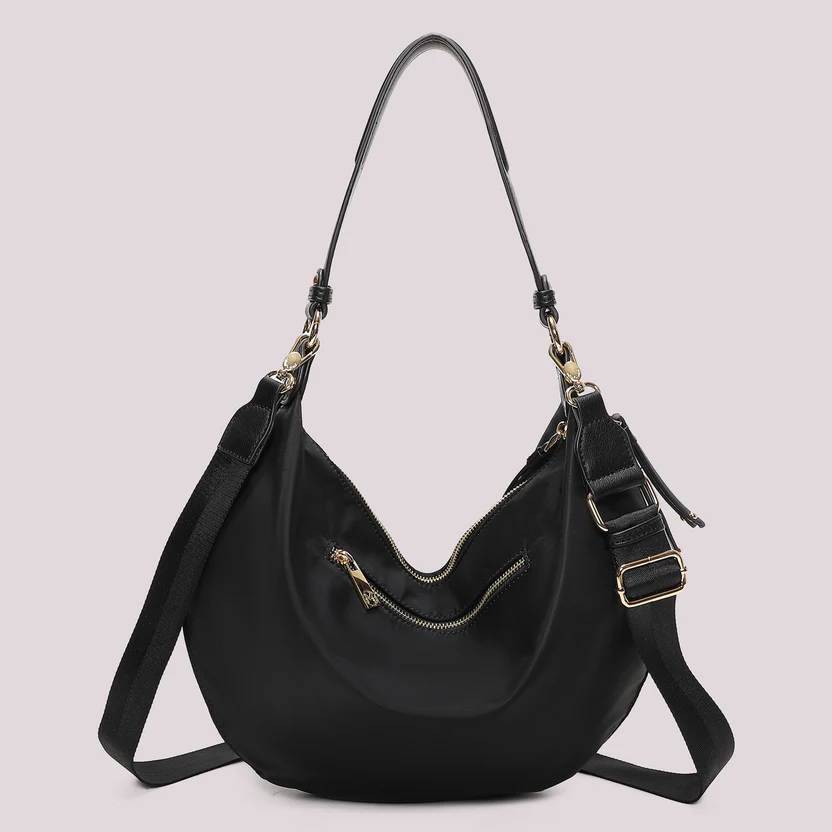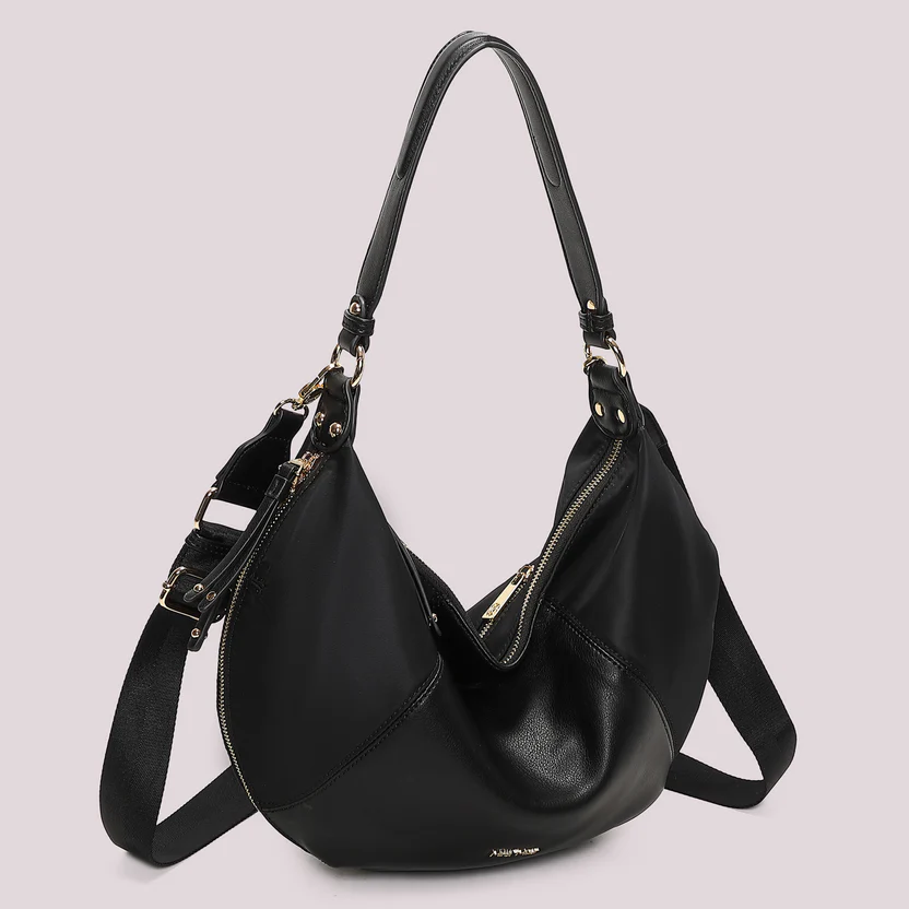 Affronta la tua giornata con stile grazie alla borsa a spalla in ecopelle nera, perfetta per ogni esigenza.