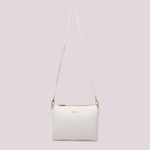 The Mimì Muà crossbody bag with wave pattern is a tribute to sophisticated femininity, inspired by the fluid dance of ocean waves. Its white hue reflects timeless elegance, perfect for those seeking an accessory that embodies both refinement and modernity.