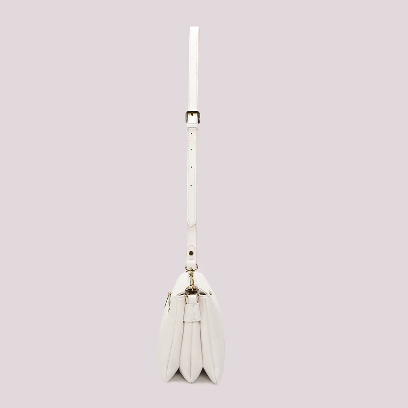 El bolso bandolera con diseño de ondas de Mimì Muà es un tributo a la feminidad sofisticada, inspirado en el baile fluido de las olas del mar. Su tono blanco refleja una elegancia atemporal, perfecto para aquellos que buscan un accesorio que encarna refinamiento y modernidad.