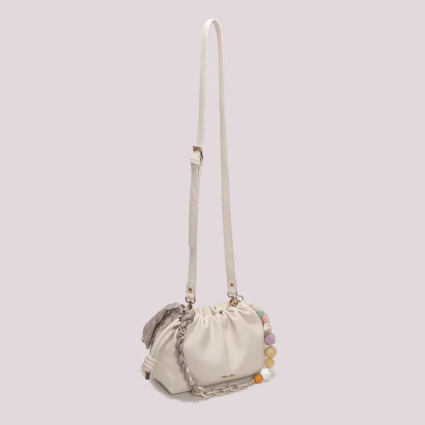 🇮🇹 **Descrizione in Italiano:** Aggiungi un tocco di eleganza e funzionalità al tuo guardaroba con la borsa a tracolla Mimì Muà, arricchita da un delizioso foulard panna. Perfetta per ogni occasione!