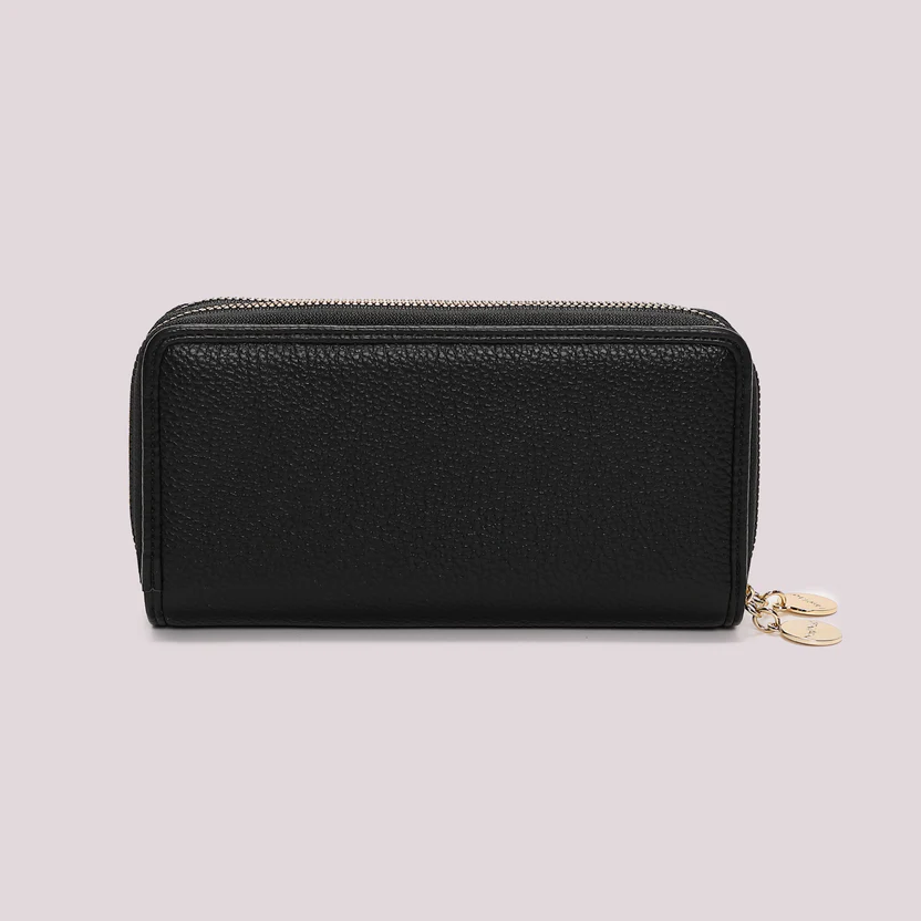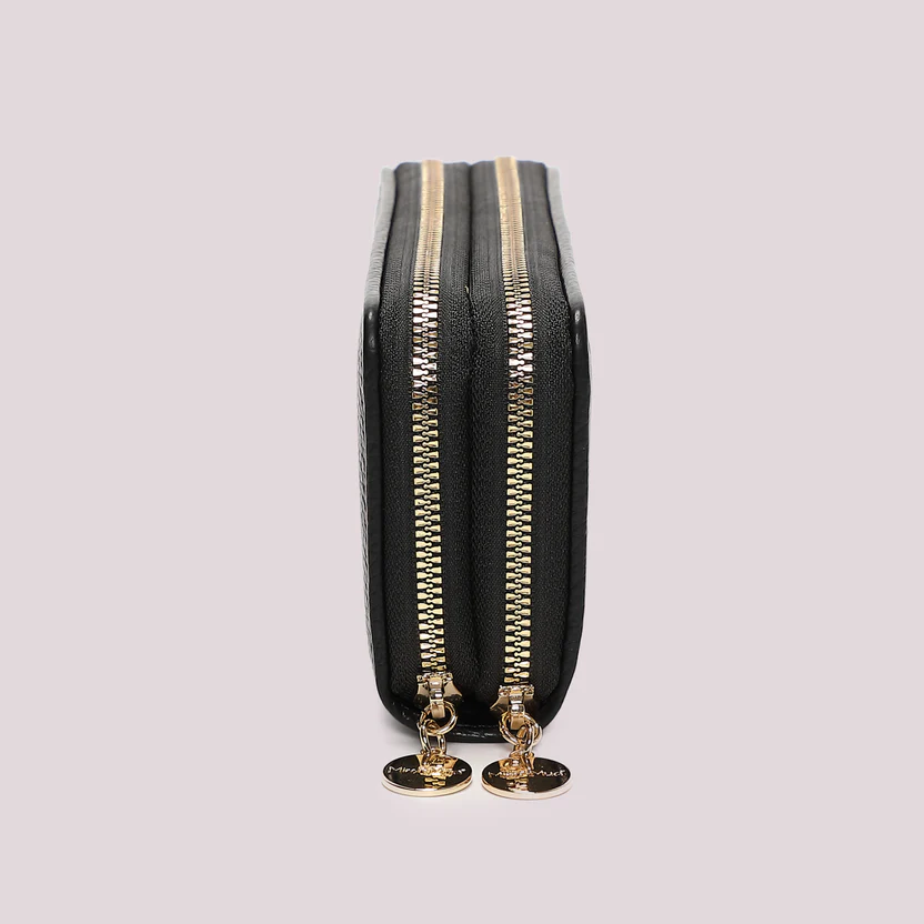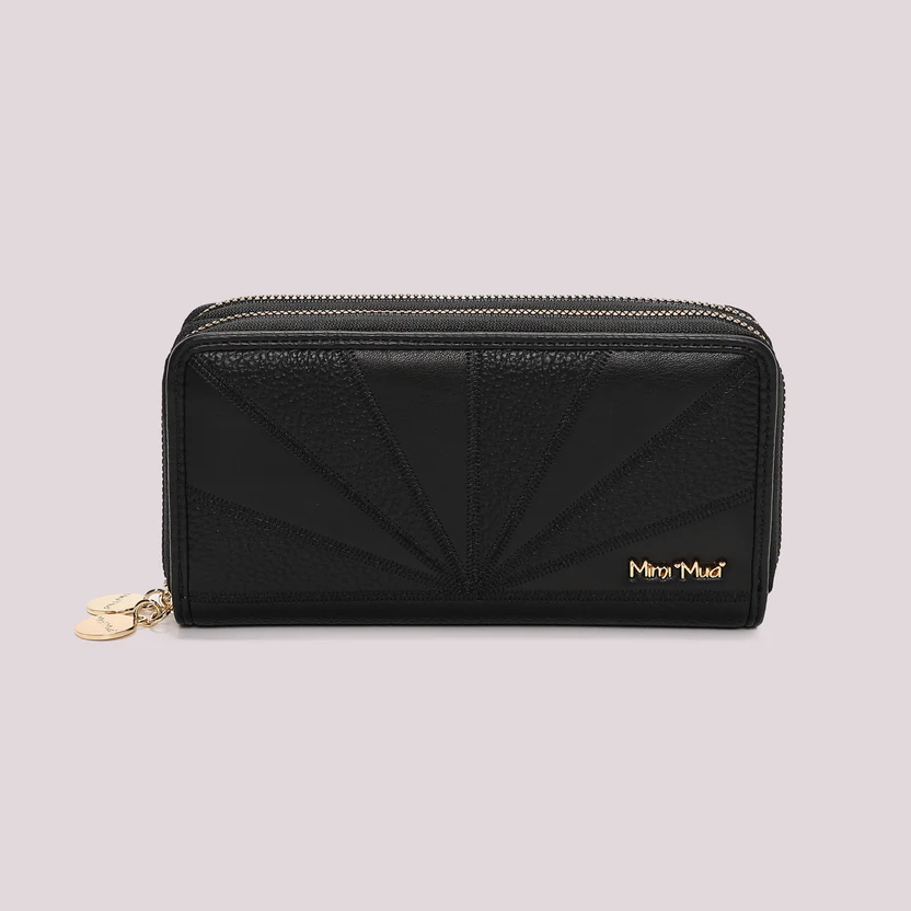 Erleben Sie die raffinierte Eleganz mit unserem großen Geldbeutel mit 2 Reißverschlüssen von Mimì Muà. Inspiriert von den fesselndsten italienischen Laufstegen erzählt jedes Detail dieses ikonischen Designs eine Geschichte von zeitlosem Luxus und Raffinesse. Das tiefschwarze Design verleiht eine geheimnisvolle Note und verkörpert den Kern der zeitgenössischen Mode.