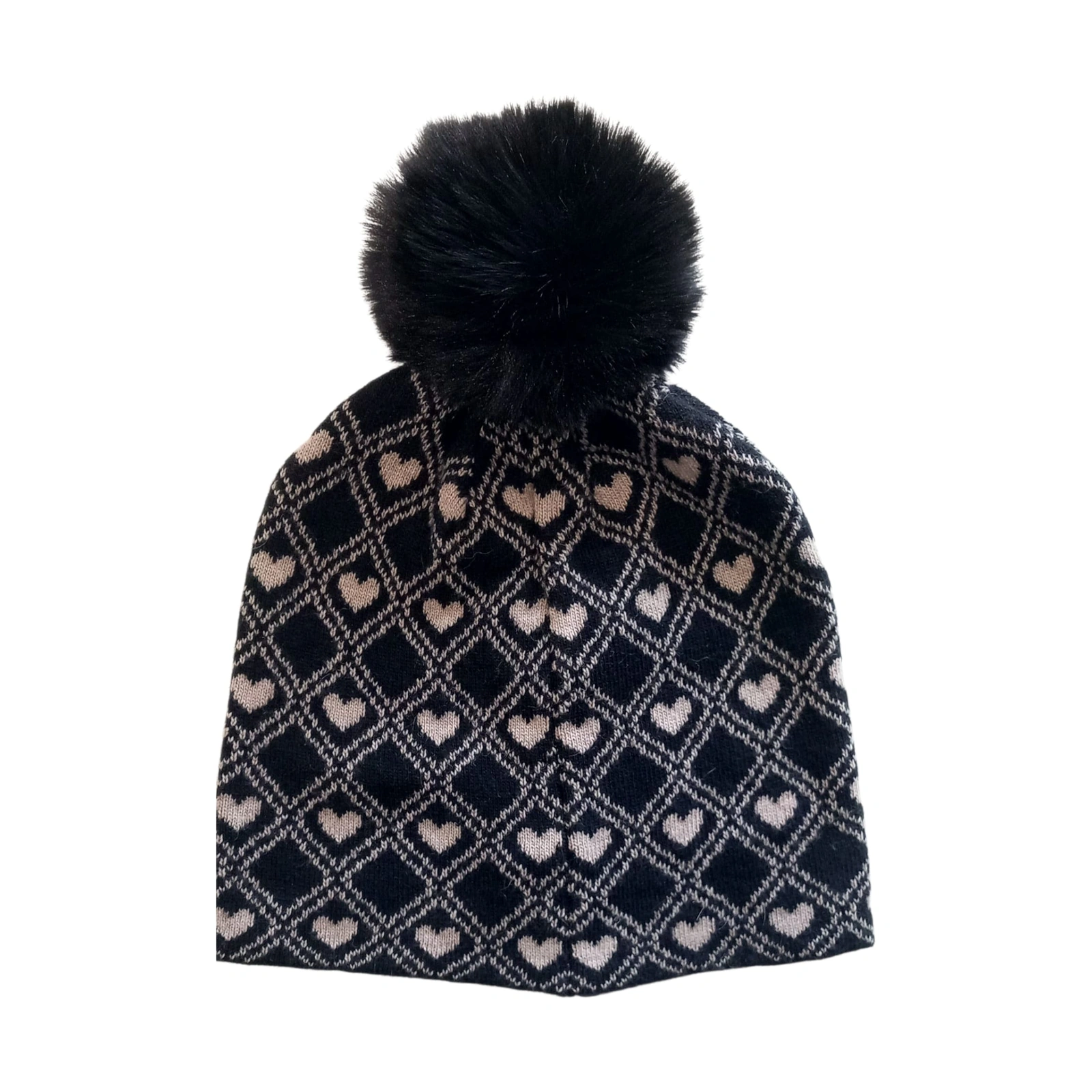 Atelier du Sac Cappello Donna in Lana con Pompon e Fantasia Cuori