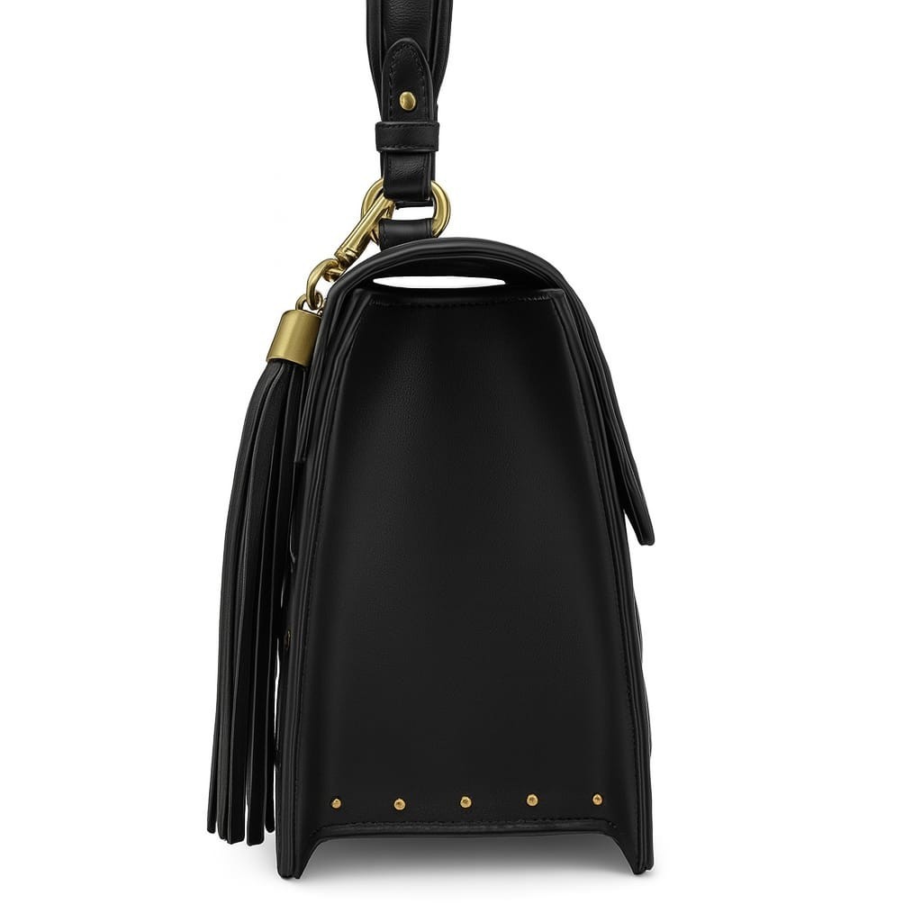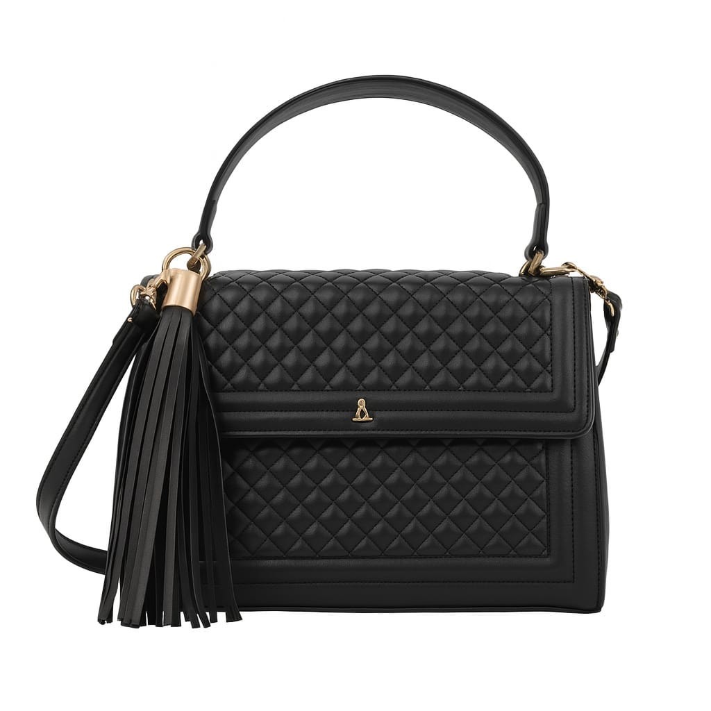 Borsa a mano Atelieur Du Sac trapuntata nera con frange e tracolla –