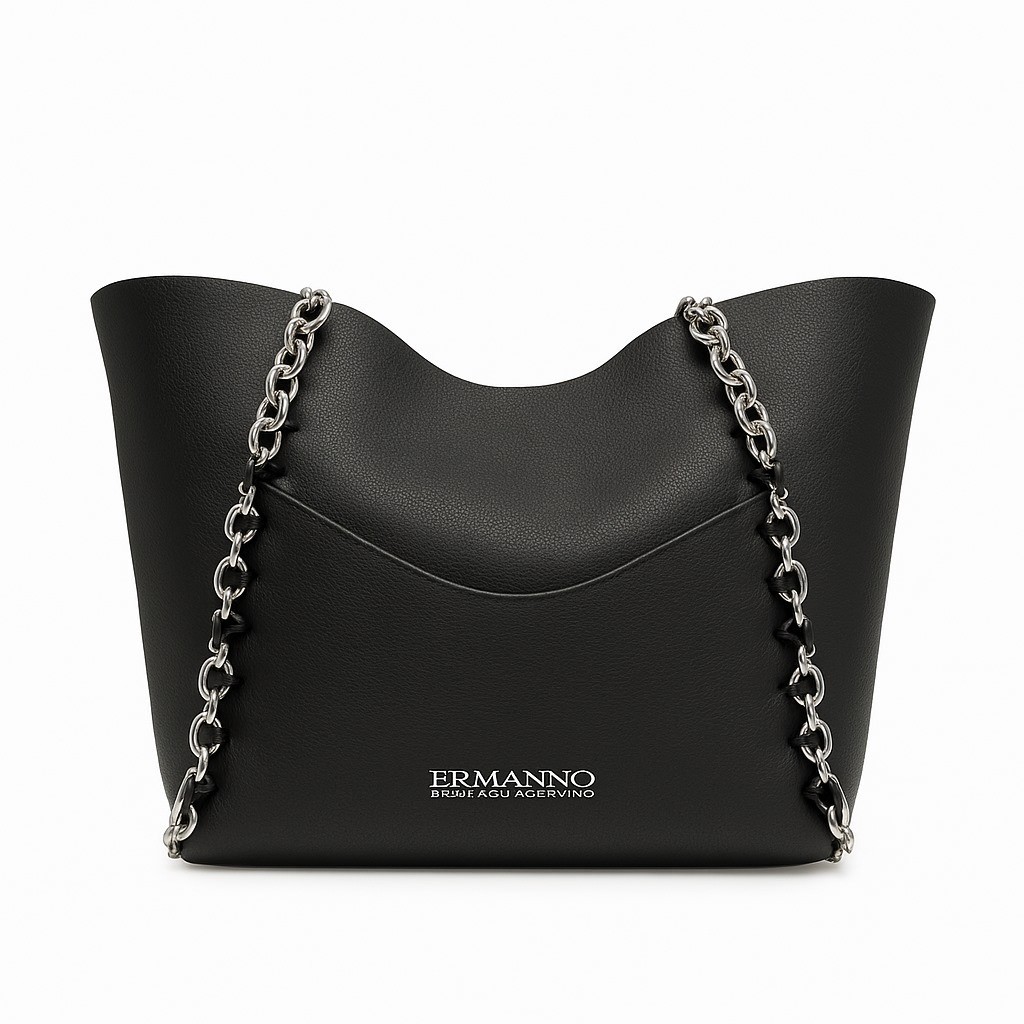 Borsa Shopper Ermanno Scervino in Ecopelle Nera con Catena