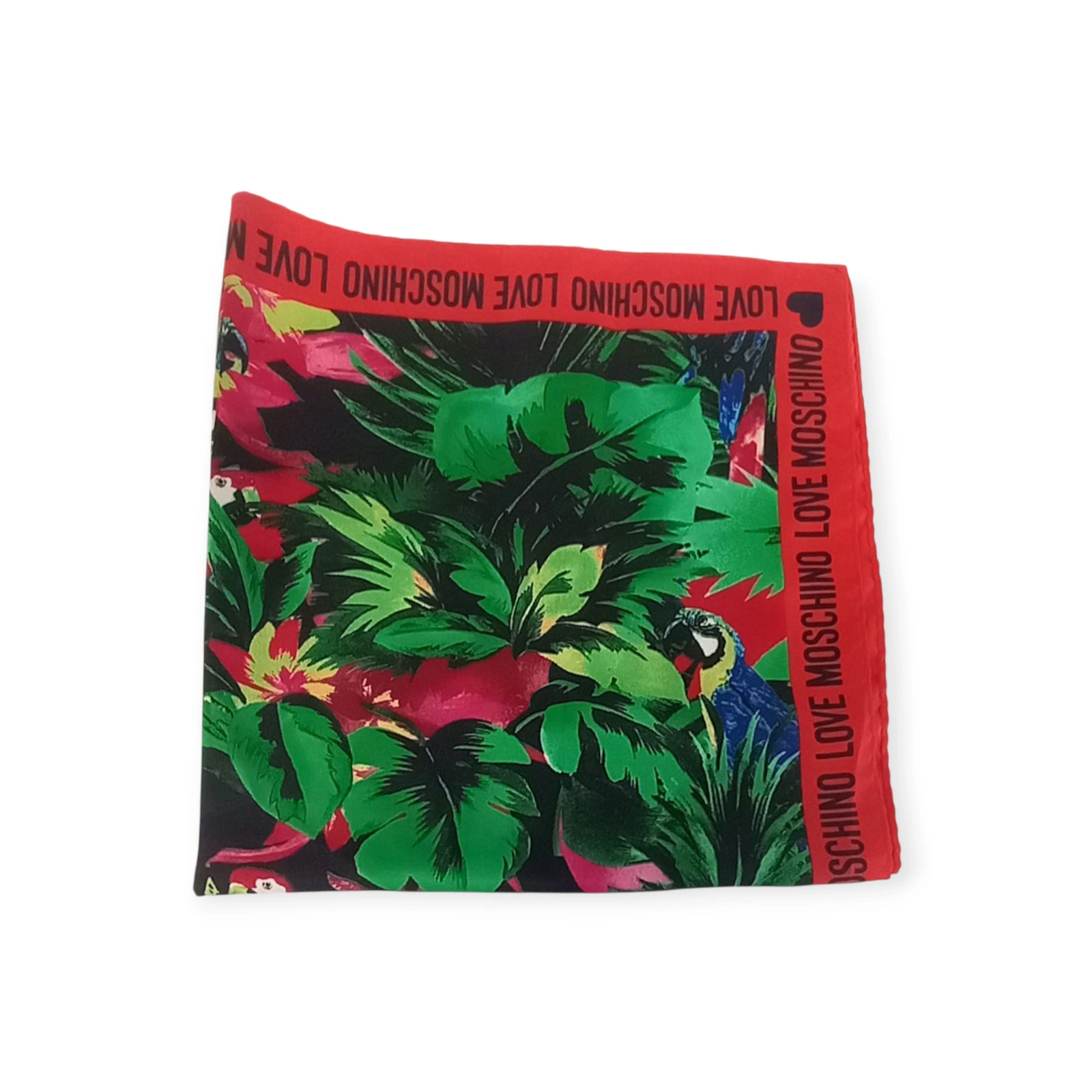 Love Moschino Foulard Donna Fantasia Tropicale con Bordo Rosso