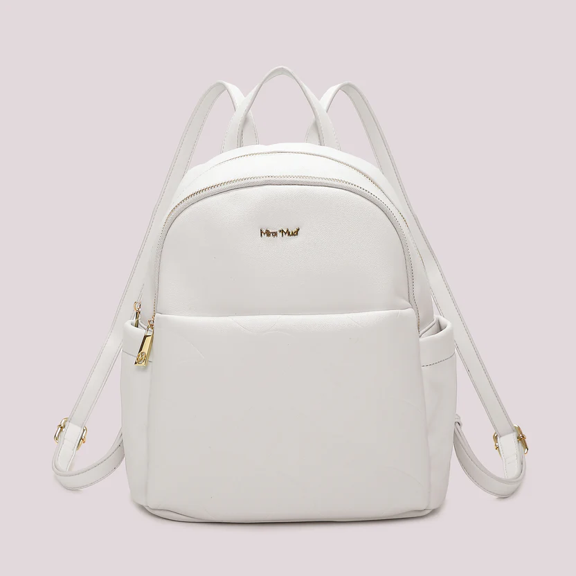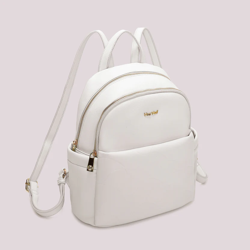 Immerse yourself in the waves of elegant design with the Mimì Muà backpack, a creation that evokes the subtle charm of contemporary Italian fashion. Its pristine white exudes serenity and sophistication, reminiscent of an everlasting summer.